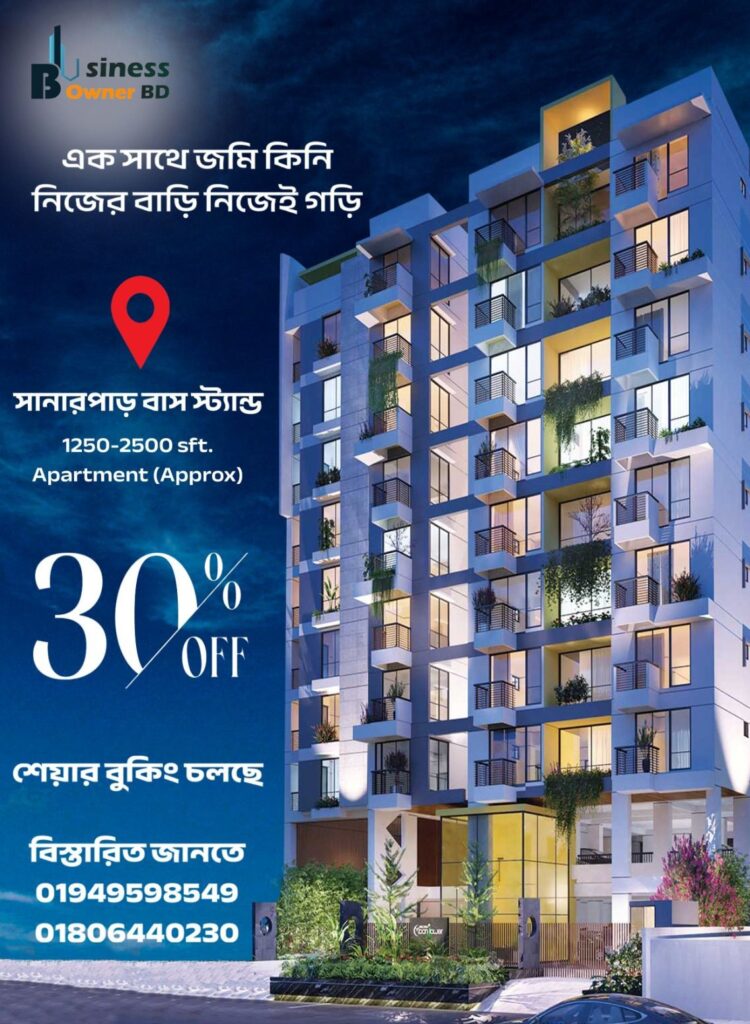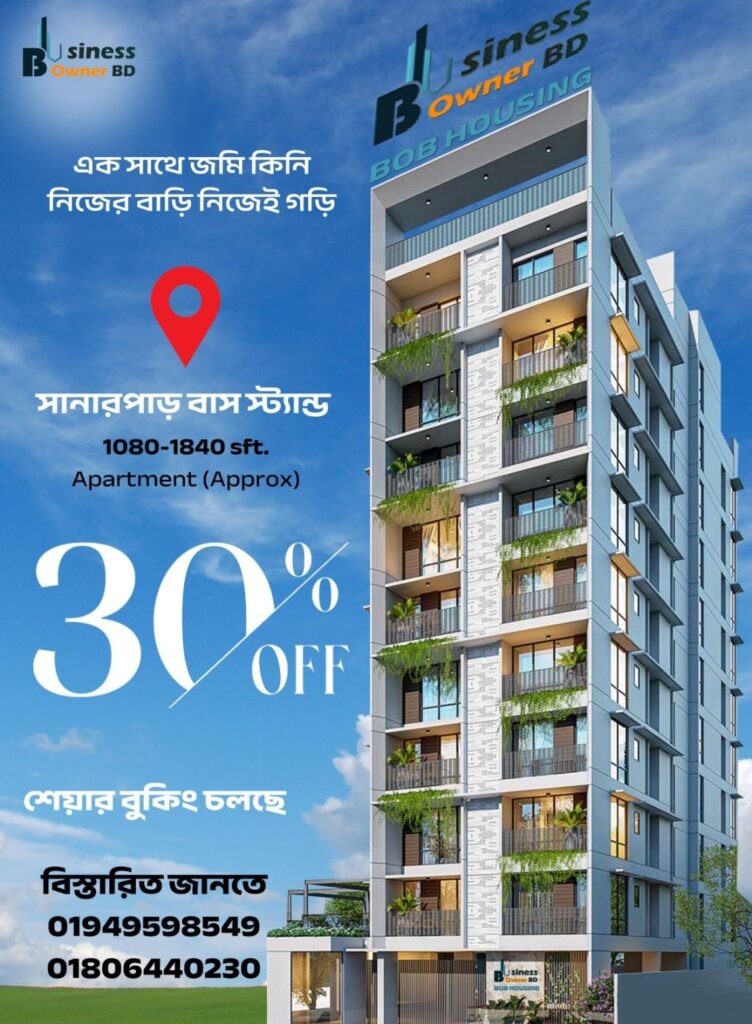 Introducing the BOB Housing Project, a new opportunity to invest in premium housing with a massive 30% discount for early investors. Located in a fast-growing area with modern facilities, our housing project is designed for comfort, security, and long-term profit. Whether you want to own your dream home or invest for steady monthly returns, this project ensures both lifestyle and financial growth. Limited-time offer — book your share or plot now and enjoy the best price in Bangladesh’s housing market.